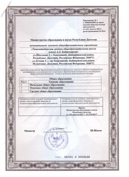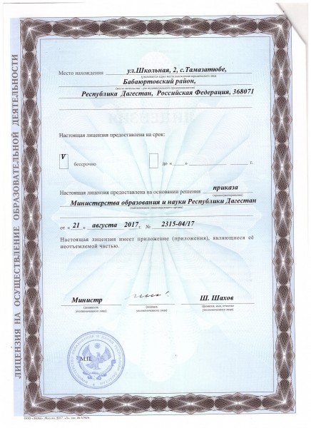 | Адрес местонахождения образовательной организации* | 368071, Республика Дагестан Бабаюртовский района с.Тамазатюбе ул. Школьная, д. 2 |